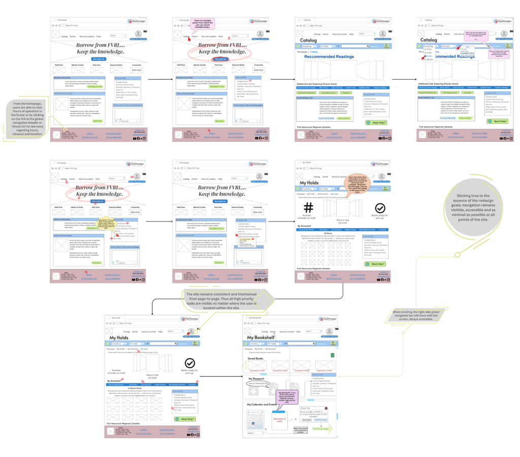 - As shown in the wireframes, key access points are repeated to ensure completion, benefiting both FVRL and the user.